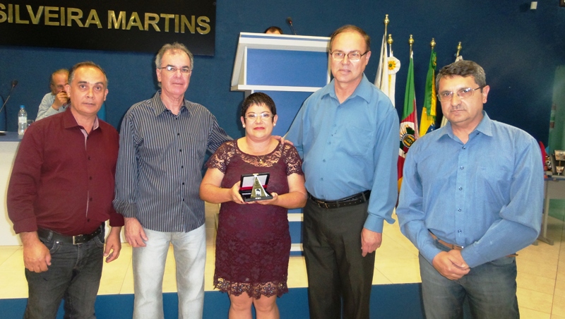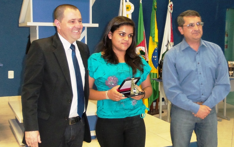 Na sequência, foi a vez da educadora destaque. Sob forte aplauso do público presente – formado por familiares e amigos dos homenageados e autoridades – Rozângela foi agraciada com o prêmio por meio dos integrantes da comissão de educação do legislativo, os vereadores João Otávio Pitelkow (PP), Eto Vargas (PDT) e Nassif Schmidt (PDT). Em seu discurso ela, além de agradecer, recontou sua trajetória na educação e emocionou a todos demonstrando amor pelo trabalho que realiza na Escola Municipal de Educação Infantil Dona Maria Liberata Fraga Prates.