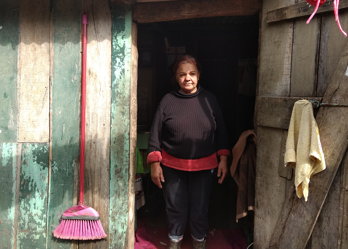A casa de madeira, que fica na Rua Conceição Curto, nos fundos do centro de reciclagem do Bairro Lôndero, está em estado precário. No local mora a Dona Maria da Graça Pereira, o esposo dela, Marino Aires Bitencourt, além de mais quatro pessoas.