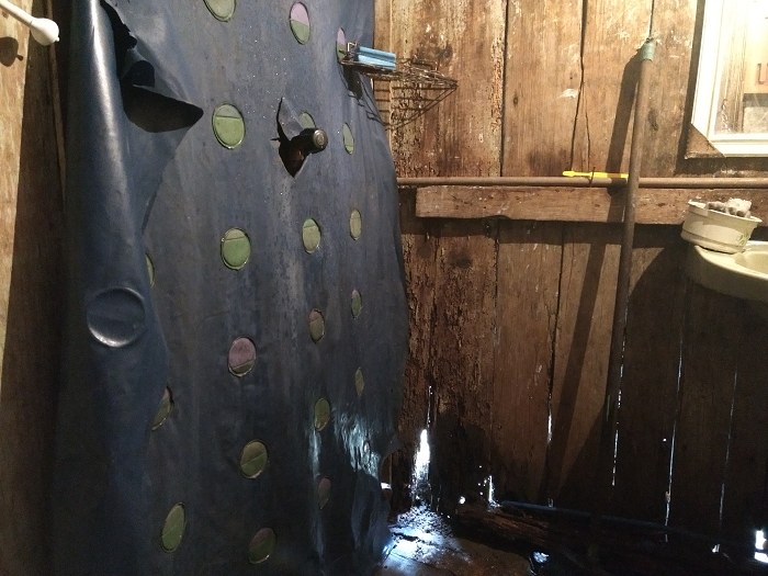 Frestas no banheiro permitem entrada de cobras, ratos e baratas.