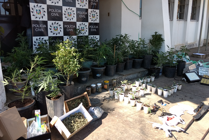 Lá, foram encontradas centenas de mudas de maconha, além da estrutura completa para o cultivo. As plantas e o material usado no cultivo da maconha foram apreendidos pela Polícia Civil.