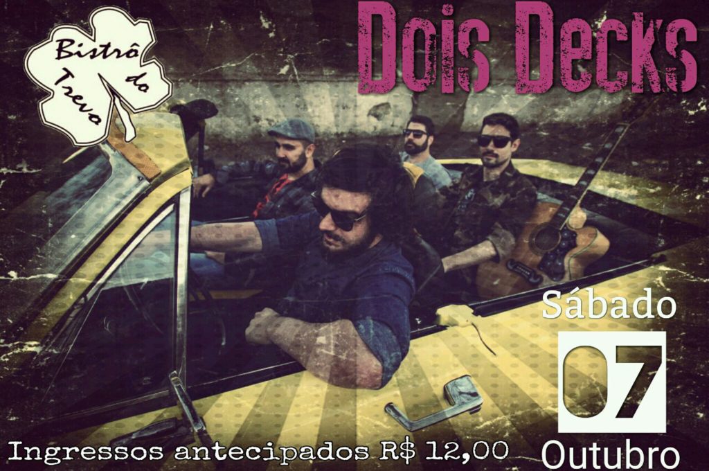 Com o repertório voltado aos sucessos dos anos 60 e 70, o grupo liderado pelo vocalista Rodrigo Cezimbra faz uma viagem por clássicos de bandas como The Beatles, Elvis Presley e Creedence Clearwater Revival, dentre outras. O rock gaúcho também não deixa de ser visitado pelos músicos que completam a Dois Decks, Fernando Seco (bateria), Maurício Krug (baixo) e Max Chiapetta (guitarra).