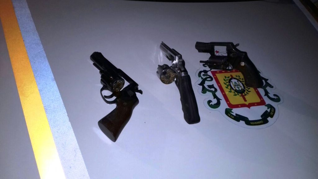 Os suspeitos foram abordados nas proximidades da Rua Paulo Lôndero, há alguns metros da unidade de saúde. Ao realizar uma revista nas proximidades, os PMs acabaram encontrando três revólveres escondidos em um bueiro. As armas estavam municiadas.