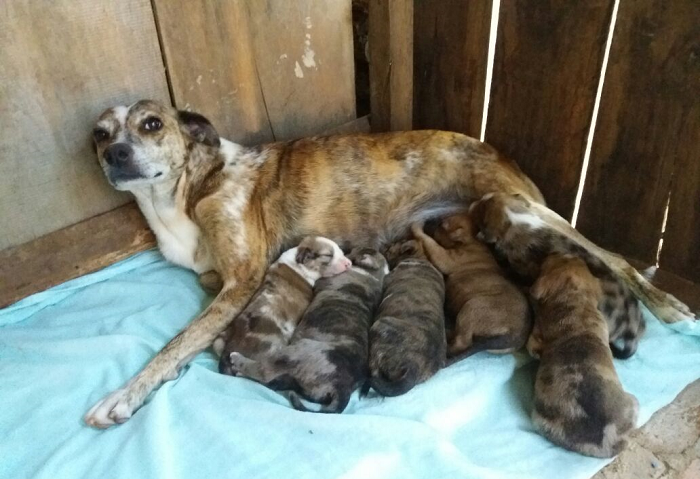 O morador, que está proporcionando cuidados aos filhotes e à cadela, não tem como ficar com os animais e disse que estão disponíveis para adoção quatro machos e duas fêmeas. Ele conta que estava indo levar água e comida a um cachorro que fica amarrado no sol quando encontrou a cadela naquela situação.