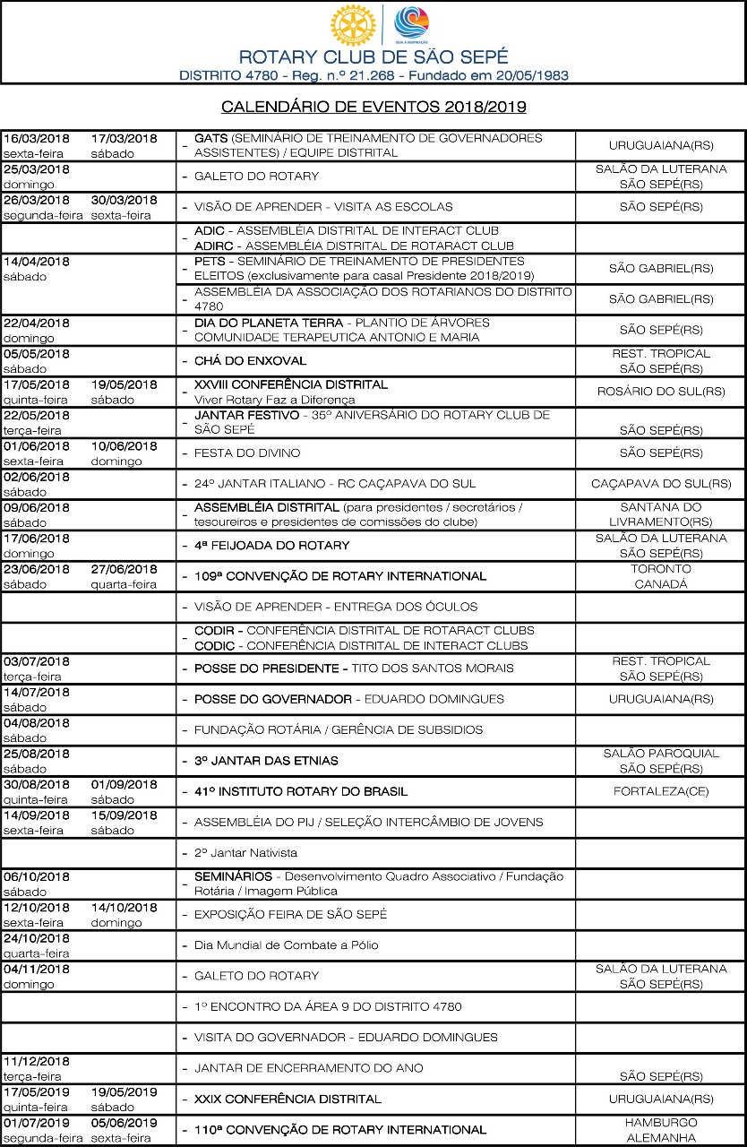 Confira o calendário de eventos do Rotary Club de São Sepé