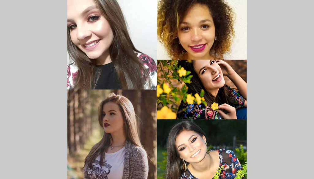 As candidatas são: Cláudia Aires da Silva, 17 anos; Danielly Ricco Almeida, 14 anos; Maria Fernanda Schirmann Leão, 15 anos; Gisara Castro Flôres, 21 anos e Luíza Santos Pôrto, 15 anos.