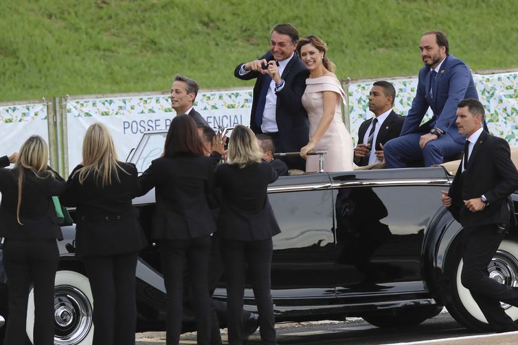 Logo após receber a faixa presidencial de Michel Temer, o presidente Jair Bolsonaro discursou no Parlatório do Palácio do Planalto, de frente para o público que lotava a Praça dos Três Poderes. Recepcionado aos gritos de “mito” e “o capitão chegou”, Bolsonaro propôs a criação de um “movimento para restabelecer padrões éticos e morais que transformarão nosso país”. Ele defendeu ainda que “a corrupção, os privilégios,as vantagens, os favores politizados, partidarizados” acabem e fiquem “no passado para que o governo e a economia sirvam de verdade para a nação”. O momento mais aplaudido de seu discurso ocorreu quando proferiu a seguinte frase: “O povo começou a se liberar do socialismo”.