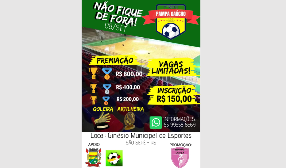 São Sepé sedia em setembro uma competição feminina de futsal. A iniciativa é do “Meninas da Vila” e busca angariar recursos para a equipe com a participação de outros times do Estado.