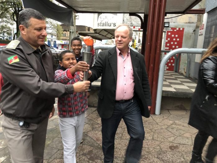 O prefeito Léo Girardello e o Comandante do Pelotão da Brigada Militar, Magno Brum, conduziram junto de alunos o fogo simbólico. Em razão do tempo instável, o desfile das escolas homenageadas foi transferido para a próxima quinta-feira, às 14h30min. Em sua manifestação, o prefeito do município lamentou a atual situação que o país passa, mas destacou que as pessoas devem manter seu papel de cidadão, tanto na escolha dos líderes como na conduta diária.