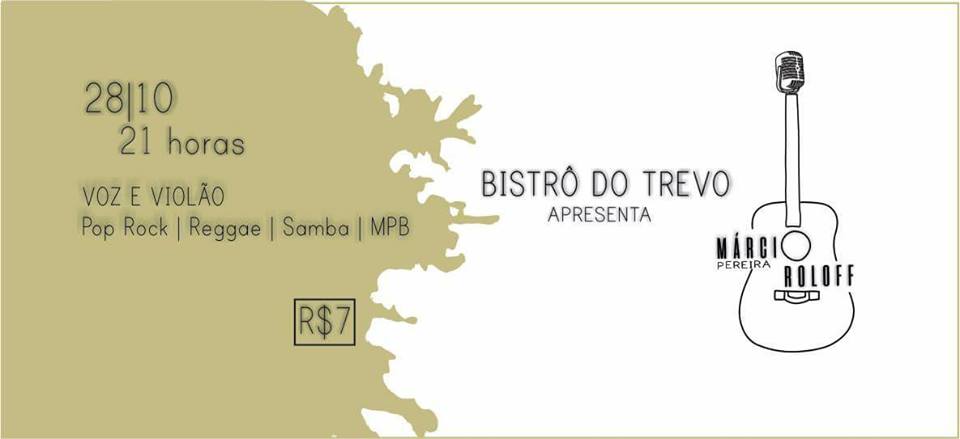 A dupla Márcio Pereira e Roloff são atrações confirmadas no Bistrô do Trevo, neste sábado, 28. O show acústico acontece a partir das 21h.