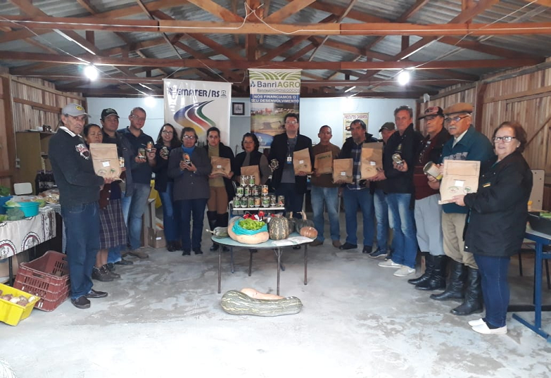 No dia 20 de julho, em Vila Nova do Sul, agricultores familiares e feirantes da Associação de Feirantes de Vila Nova do Sul (AFSUL) foram contempladas com o programa social Sementes Banrisul.