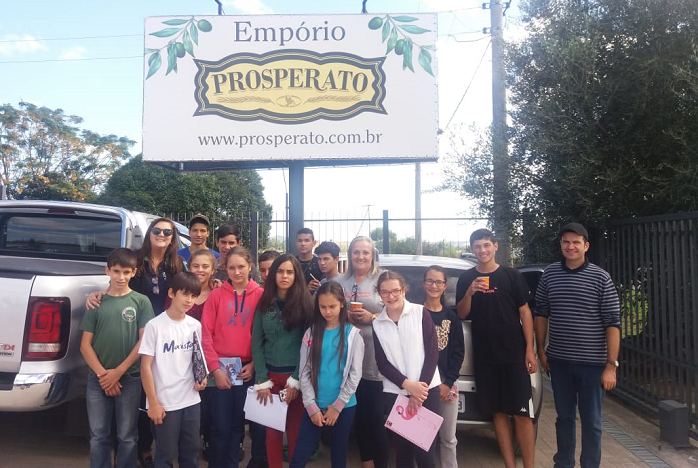 Segundo a professora Elisares Schirmann Ineu, os estudantes foram conhecer o pomar de oliveira, presenciar a colheira e tudo que é relacionado à produção do azeite de oliva no Empório Prosperato.
