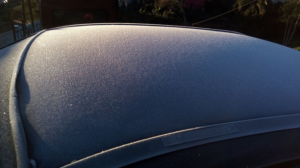 No Bairro Kurtz, entre 7h15min e 9h30min, o termômetro marcava 0ºC. A geada cobriu os carros, campos e telhados das casas. Temperaturas muito baixas também em Formigueiro.