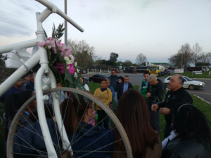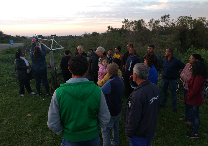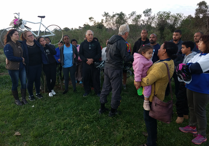 A iniciativa foi dos colegas de ciclismo, liderados pelo professor Edson Casanova e por Nelson Ineu, que fixaram uma bicicleta branca e colocaram flores no local. A homenagem emocionou os familiares e colegas de Rodrigues. Eles saíram às 18h da escola Ciep e foram acompanhados pela Brigada Militar. Eles percorreram parte da BR-392 até o local da homenagem.