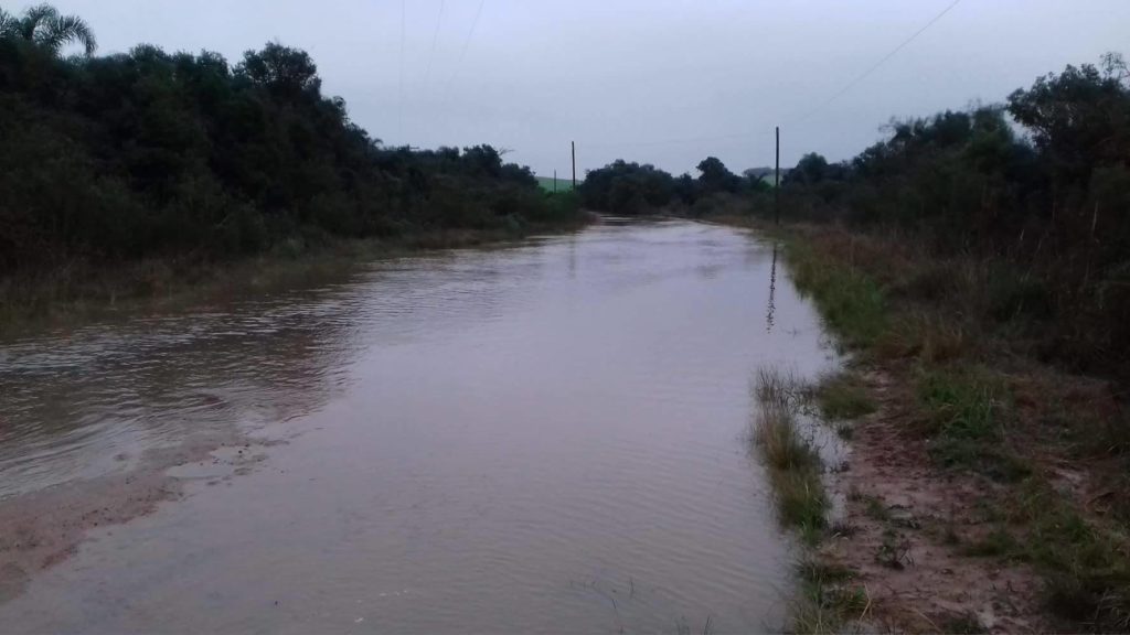 A chuva dos últimos dias já acumula cerca de 90mm na região do Terceiro Distrito, no interior de São Sepé. Desde as últimas horas, o volume de água fez com que novamente a localidade dos “Passinhos” ficasse alagada. O trânsito está interrompido na estrada.