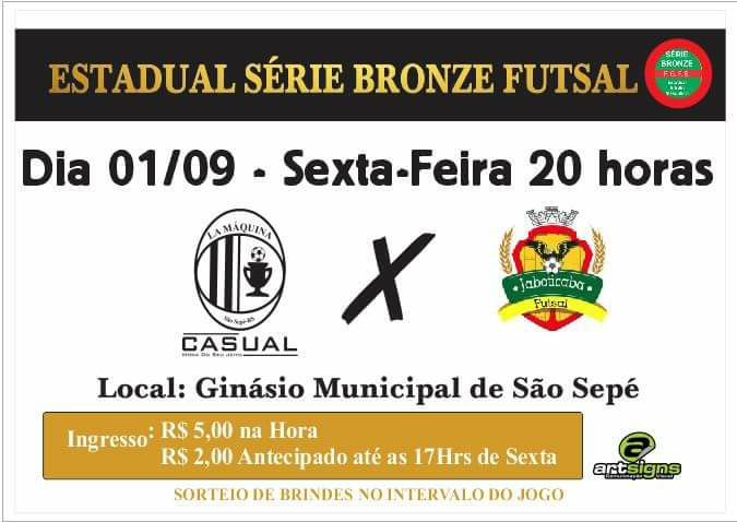 O jogo antecipado para a próxima sexta-feira, 1º de setembro, às 20h, já tem aberta a venda de ingressos. A equipe do La Máquina-Casual espera novamente mobilizar a torcida como da última vez em que atuou em solo sepeense. Os ingressos tem valor de R$ 2,00 e ainda há sorteio de brindes durante o intervalo do jogo. Na hora, a entrada ao ginásio municipal custa R$ 5,00.