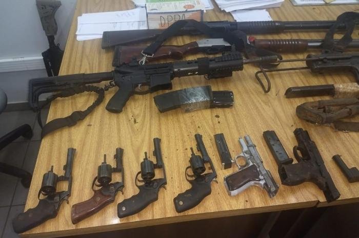 Além do dinheiro, foram apreendidas cerca de 10 armas, entre metralhadoras, revólveres e pistolas, munição, coletes à prova de balas e celulares.