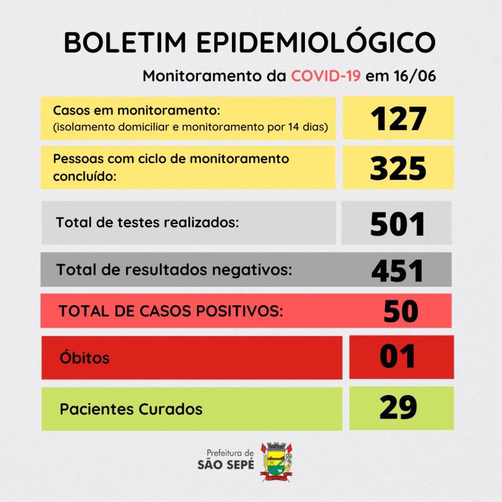 A Prefeitura de São Sepé, Secretaria de Saúde e Comitê Estratégico de Acompanhamento e Enfrentamento ao Coronavírus divulgaram o boletim epidemiológico atualizado dos casos de covid-19 em São Sepé. Os dados foram disponibilizados nesta terça-feira, 16.