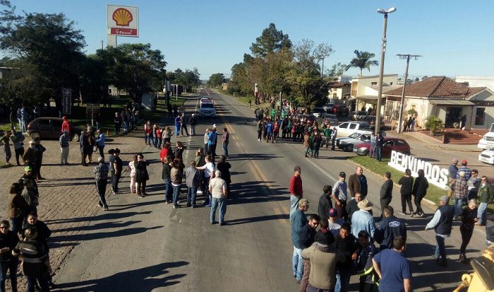 Uma das principais rodovias do Rio Grande do Sul e importante ligação entre a Fronteira Oeste e a região de Porto Alegre foi bloqueada nesta quinta-feira, 24. A manifestação ficou concentrada na entrada de Vila Nova do Sul e teve apoio do comércio local que fechou as portas entre as 15h e 15h30min.