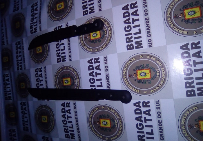 Os policiais abordaram o indivíduo de iniciais L.P.R., de 18 anos, no Centro da cidade. Com ele a polícia encontrou dois facões, um da marca Tramontina com aproximadamente 25 centímetros de lâmina e outro da marca Coling.