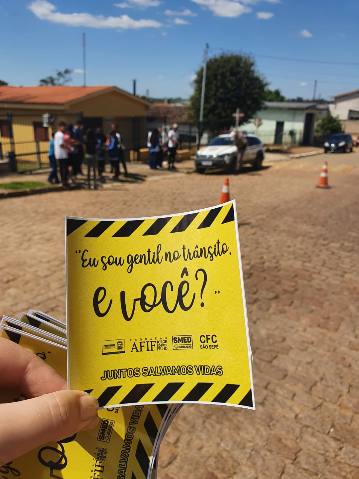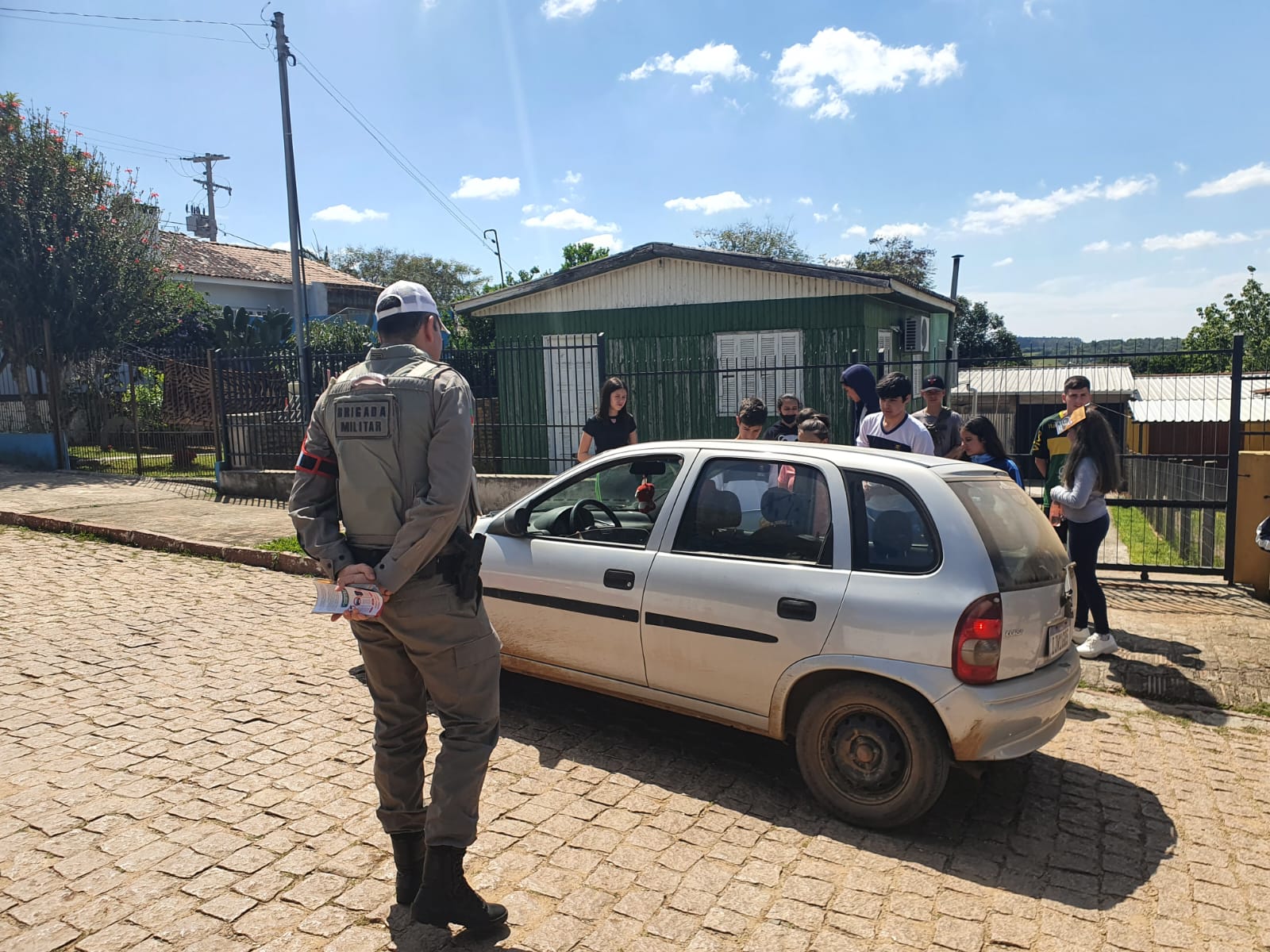 Na manhã de terça-feira, 27, a BM de São Sepé, através do 2° Sargento Valles, participou de uma atividade alusiva à Semana do trânsito. A atividade ocorreu na Escola Municipal Padre Theo, onde após uma conversa com os alunos, foi feita uma blitz educativa em frente à escola, com a distribuição de folders para quem passava pelo local.
