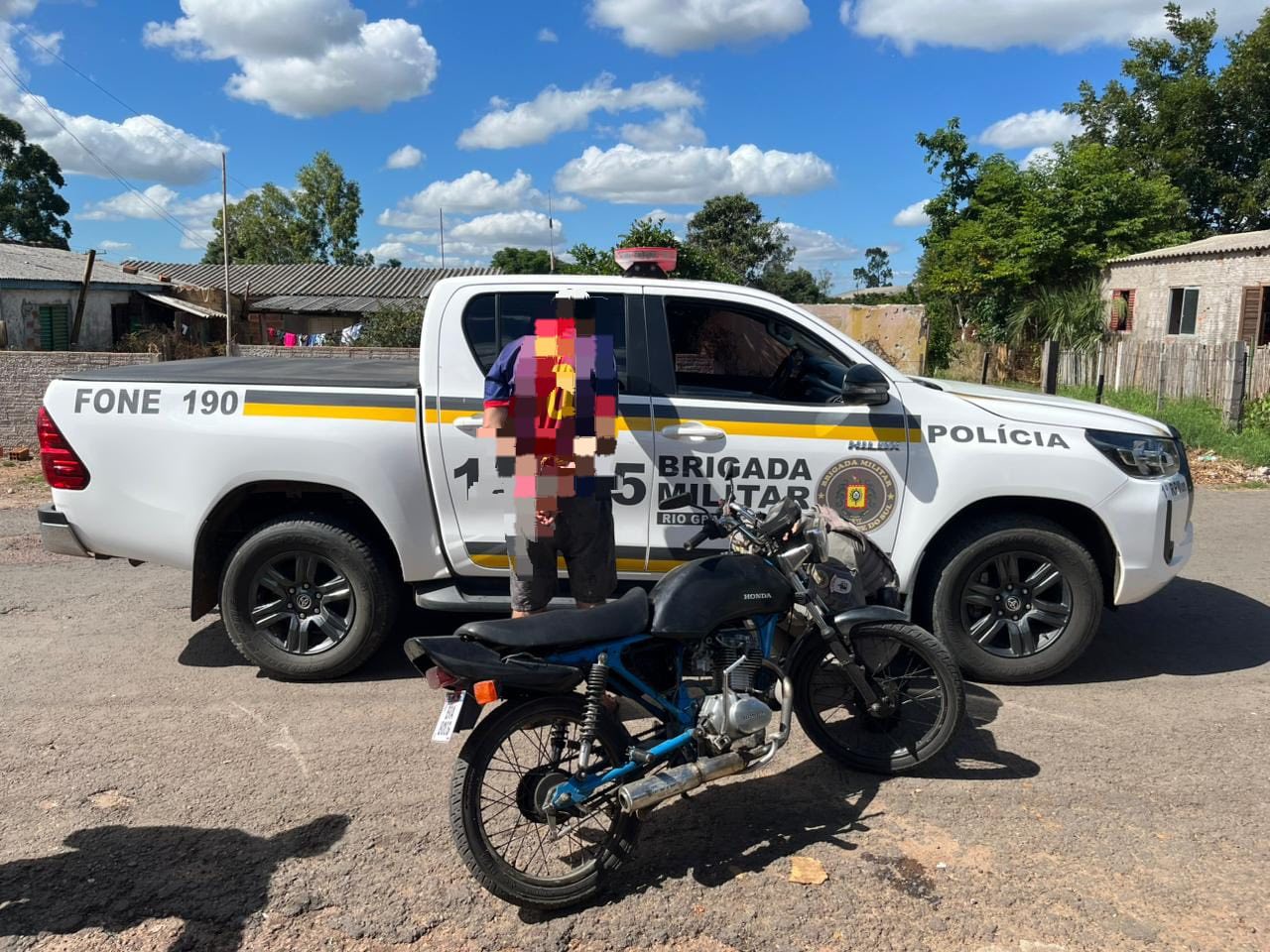 Em verificação, foi constatado que a motocicleta possuía placa de identificação artesanal, além de inconsistências no chassi e no número do motor, que não correspondiam ao veículo. Ainda, foi verificado que o condutor não possuía habilitação.