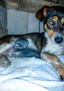 Cadela “adota” e amamenta filhote de gato em São Sepé