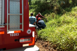 Como não havia sinal de celular no local, o pedido de socorro pelo SAMU estava inviável naquele momento. Restou ao Corpo de Bombeiros colocar a vítima dentro do caminhão enquanto os três cachorros latiam de forma insistente e tentavam morder a equipe de resgate, como se dissessem que não era para levar-mos o homem a lugar nenhum.
