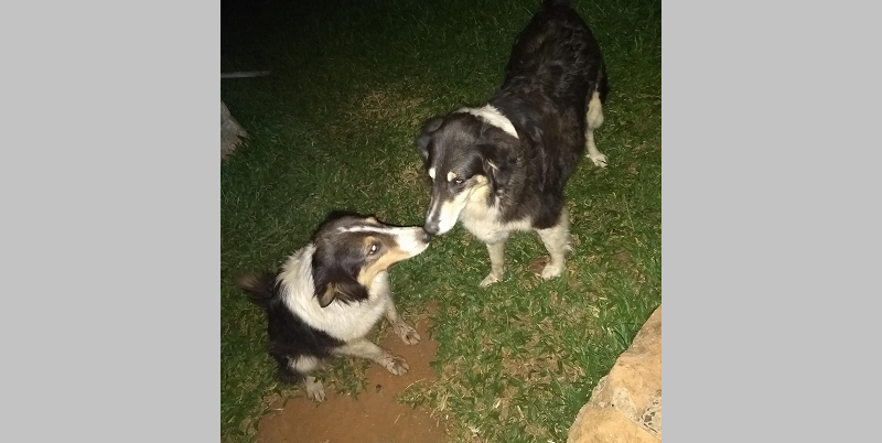 Na foto abaixo o cão adotado (à esquerda na foto) está com a cachorra de Joice