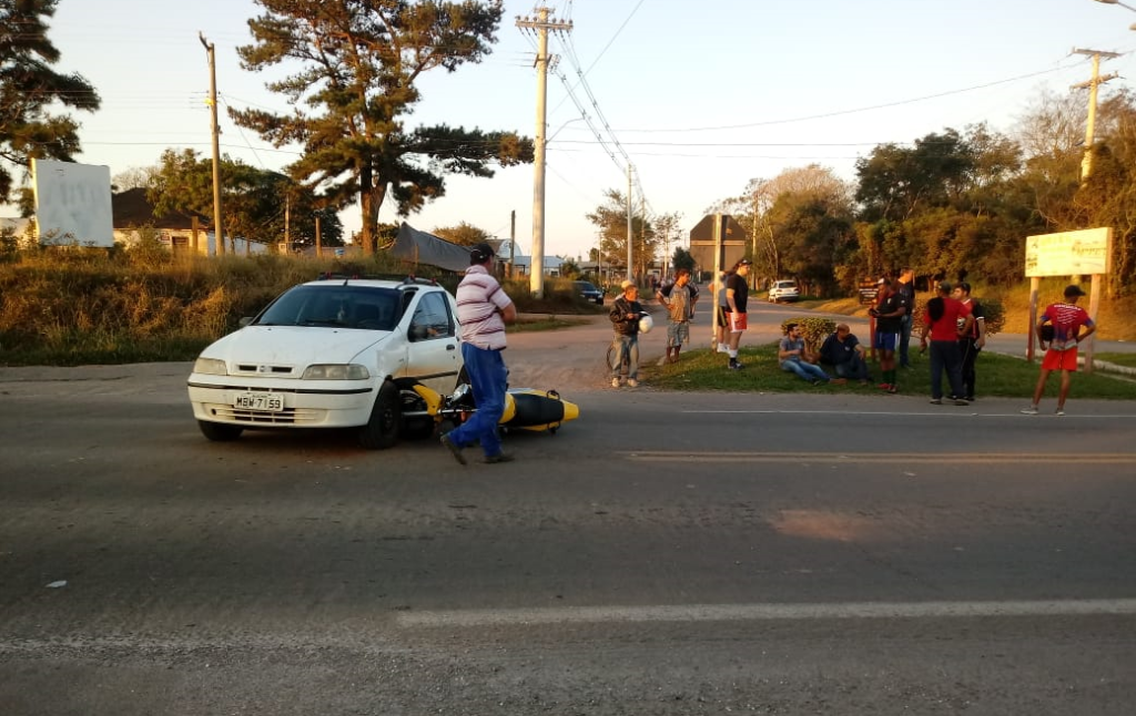 Um acidente envolveu um carro e uma motocicleta na BR-392, no trevo do Ciep. A colisão aconteceu por volta das 17h30min deste sábado, 20.