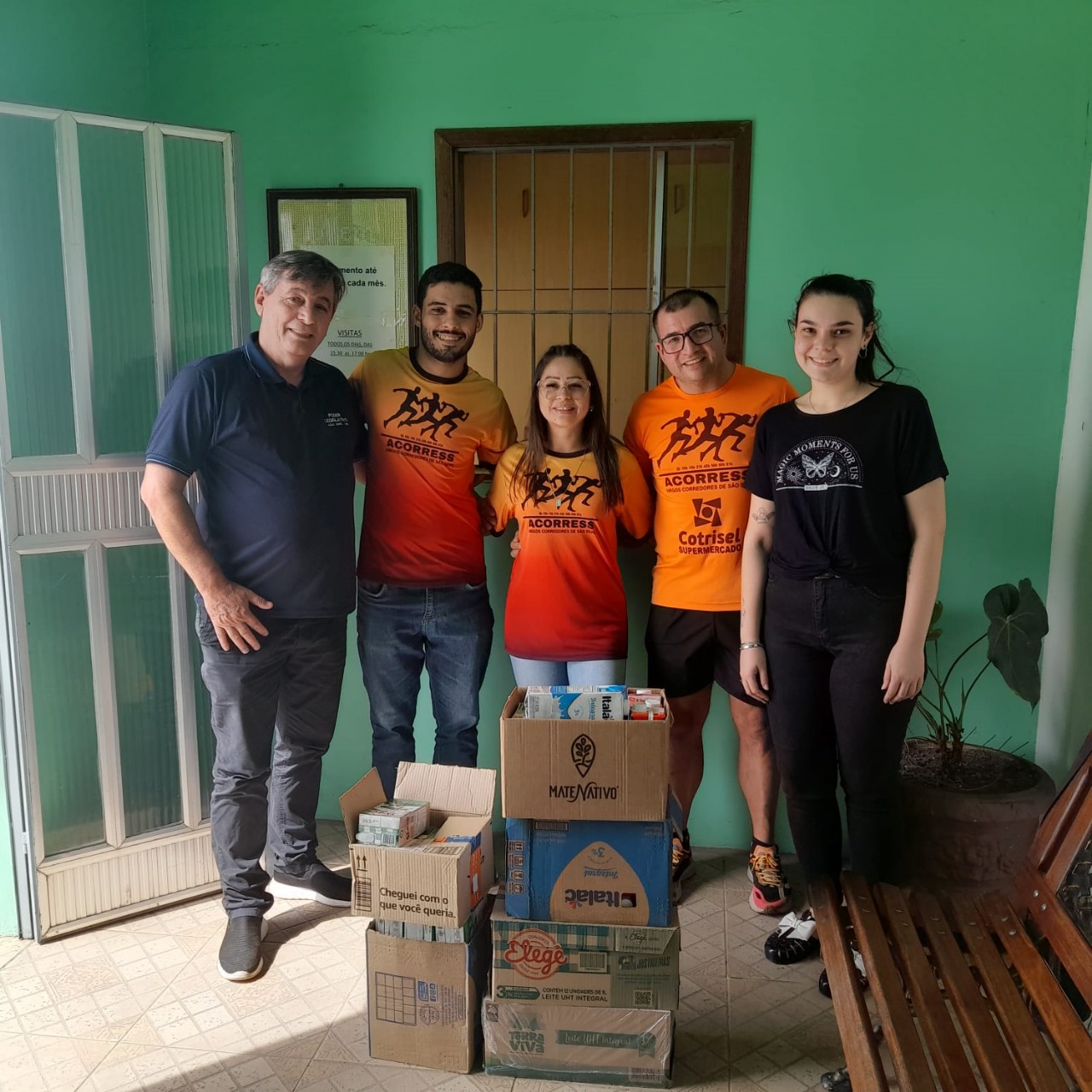 Participaram da entrega o chefe de gabineten da presidência da Câmara de Vereadores e membros da ACORRESS. Os alimentos servirão para contribuir com a alimentação dos idosos que moram no lar.