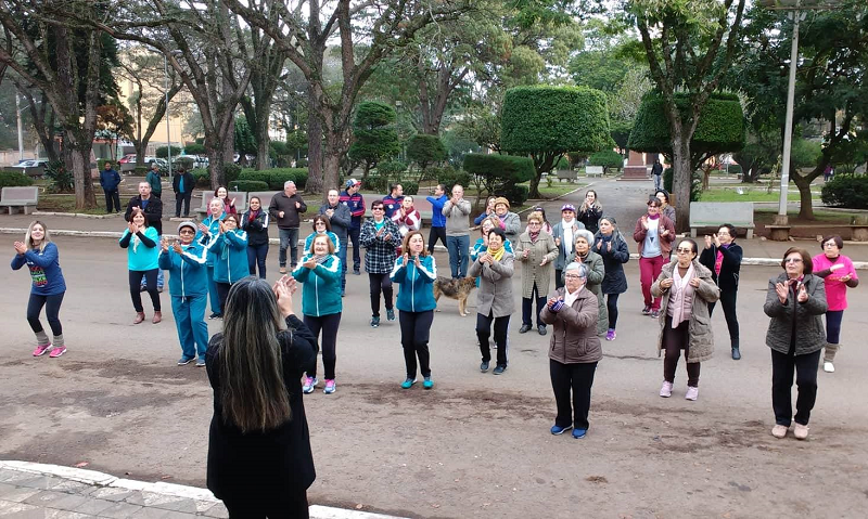 Uma atividade realizada em frente ao Centro Cultural, na Praça das Mercês, mobilizou um grupo de pessoas em São Sepé. Além disso, diversos segmentos empresariais realizaram pelo menos 15 minutos de atividades físicas com os funcionários.
