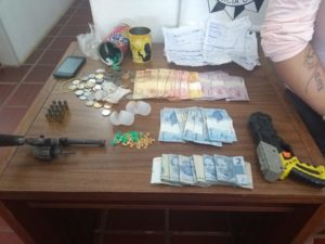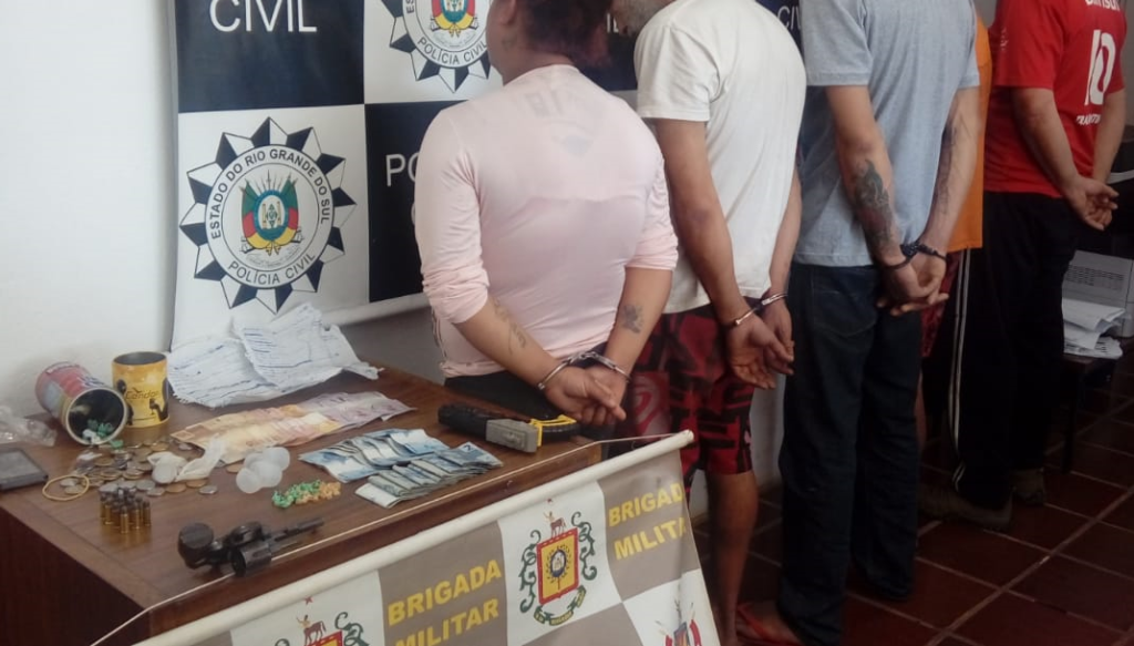 Eles foram presos em um bar localizado no Bairro Kurtz. A polícia também aprendeu uma quantidade de droga fracionada, dinheiro, munição, uma arma de brinquedo e um revólver.