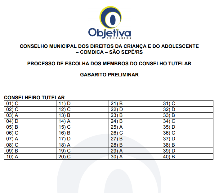 O gabarito do exame foi divulgado nesta segunda-feira e pode ser acessado clicando aqui. As notas e a classificação preliminar serão divulgadas a partir do dia 12 de julho, bem como o prazo para interposição de recursos. Serão considerados aprovados, os concorrentes que obtiverem 50% ou mais na nota final da prova.