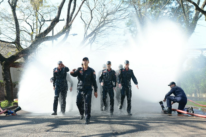 Após a solenidade, os formandos passaram pelo banho de batismo dos bombeiros. O ato é tradicional na corporação para marcar a entrada dos soldados na instituição.