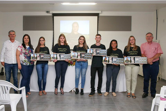 A cerimônia aconteceu na noite de sexta-feira, 26, e contou com a presença do presidente da cooperativa, José Paulo Salerno, gerente da unidade de Restinga Sêca, Vicente Cirolini, monitora do programa Aprendiz, Mariana Posser, supervidor administrativo, Douglas Oliveira, e prefeito de Restinga, Paulinho Salerno.