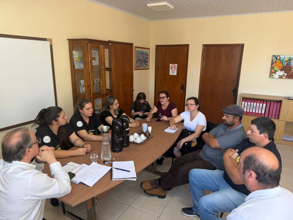 Representantes do CPM e do Conselho Escolar da Escola Municipal Coronel Chananeco, do Cerrito do Ouro, estiveram reunidos com o prefeito e a secretária de Educação na terça-feira, 14.