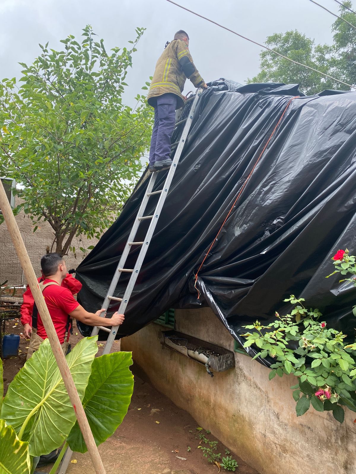 Na tarde desta terça-feira, a Defesa Civil, em parceria com os Bombeiros, atendeu a uma solicitação de emergência no bairro Santos. Foi realizada a colocação de lona em uma residência, garantindo proteção e segurança aos moradores afetados.
