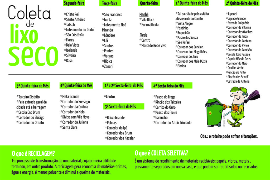 Confira o roteiro da coleta seletiva: