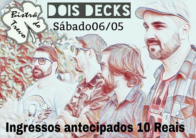 O Bistrô do Trevo recebe neste sábado, 6, mais uma vez o pop/rock da banda Dois Decks. Os antencipados tem valor de R$ 10,00.