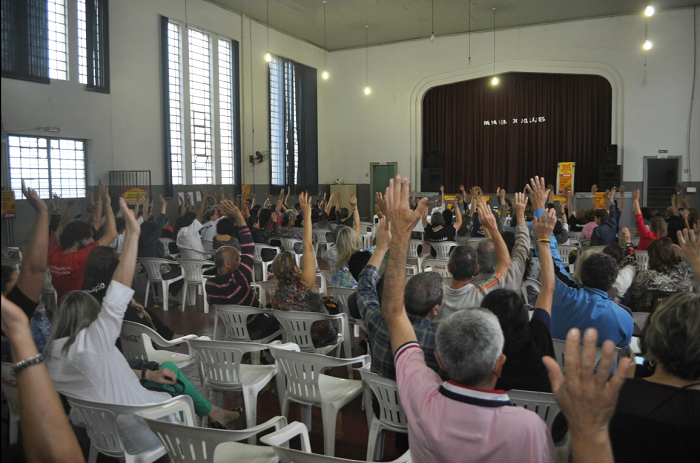 Cerca de 200 educadores estaduais participaram da assembleia regional realizada na tarde de quarta-feira, 27, no Instituto de Educação Olavo Bilac, em Santa Maria. Uma das principais decisões tomadas foi a intensificação da greve iniciada em 5 de setembro.