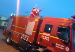 Sirenes e luzes fizeram a alegria e emoção da criançada e comunidade. Um Papai Noel ficou encarregado para a entrega dos presentes às crianças da escola e o outro para a entrega para toda a comunidade, uma iniciativa que vem se concretizando desde o ano passado.
