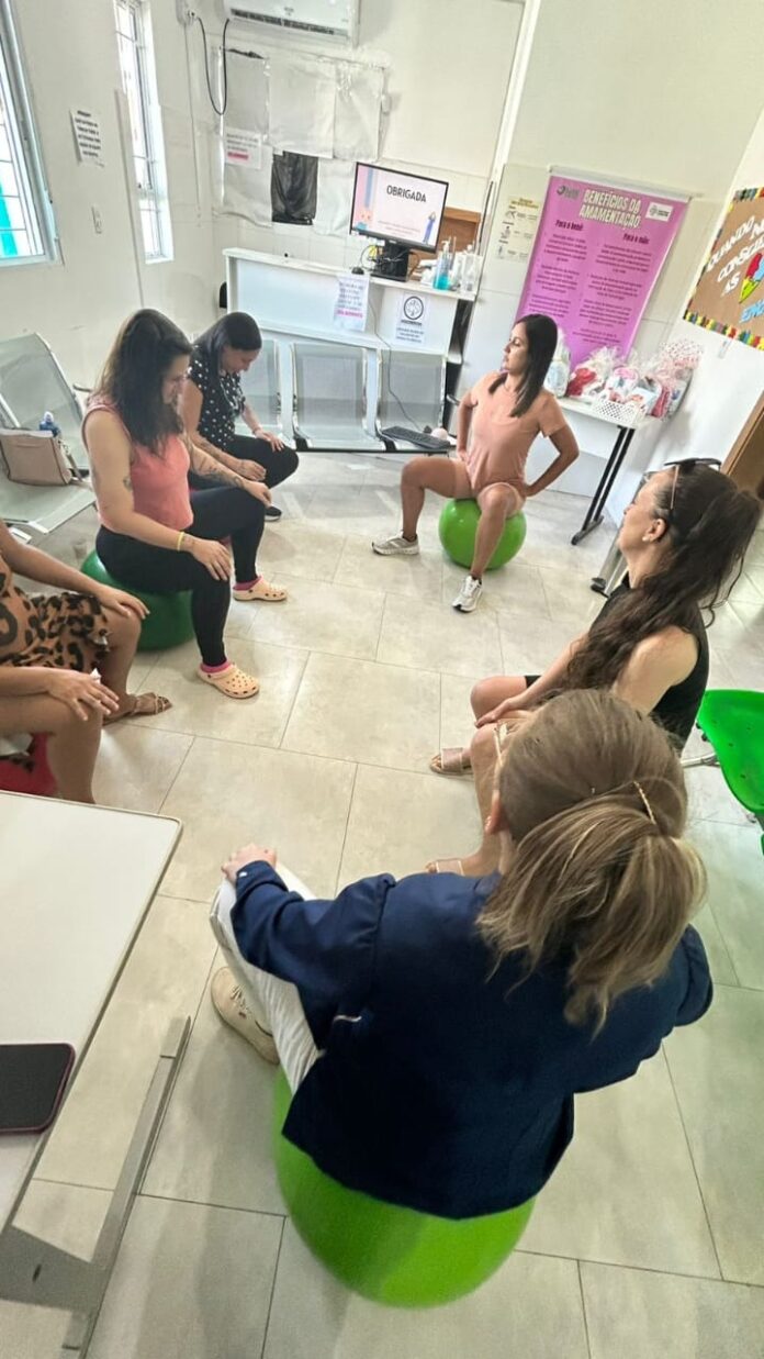 Durante o encontro, foi realizada uma oficina de pilates conduzida pela profissional Alexandra, com a prática de exercícios específicos e seguros para este período, contribuindo para o bem-estar físico e emocional das gestantes. Além da atividade física, as participantes também receberam orientações importantes sobre saúde e cuidados na gestação.