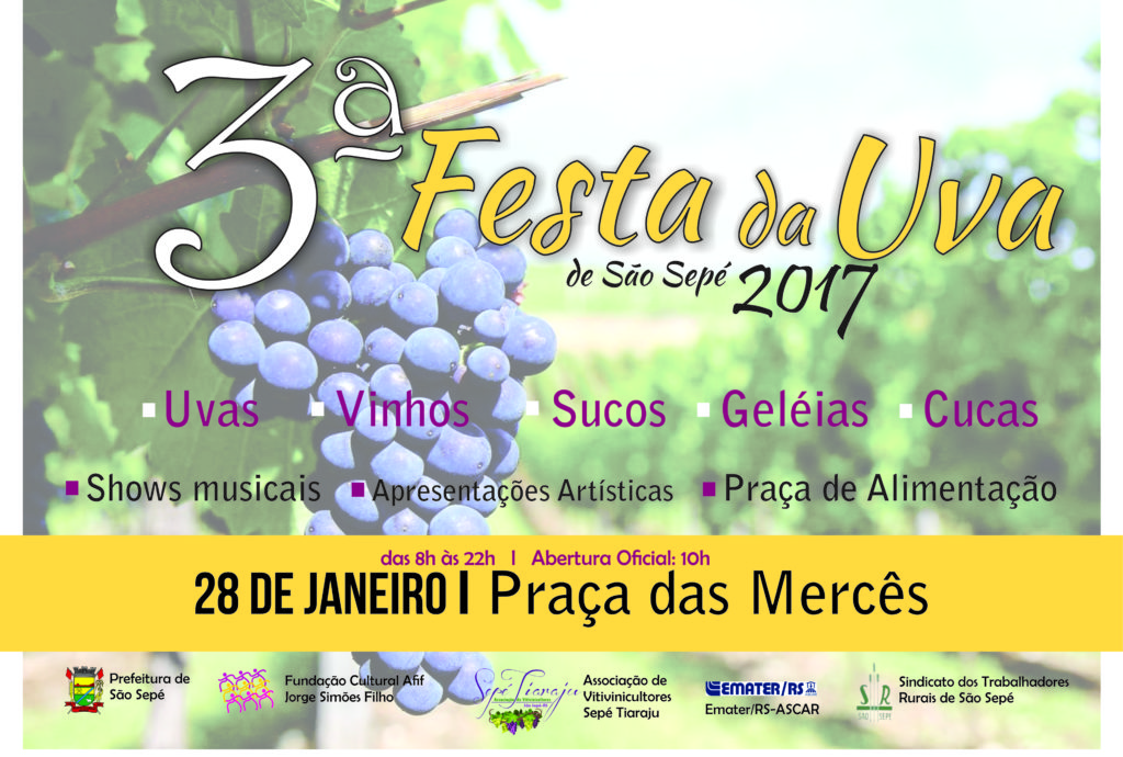 O evento ainda sedia shows musicais e apresentações artísticas. Paralelo a festa da uva, ocorre mais uma edição do “Brique das Mercês”, com produções artesanais. A 3ª Festa da Uva de São Sepé tem promoção da Associação de Vitivinicultores Sepé Tiaraju, Prefeitura de São Sepé, Emater/RS-Ascar, Fundação Cultural Afif Jorge Simões Filho e Sindicato dos Trabalhadores Rurais de São Sepé.