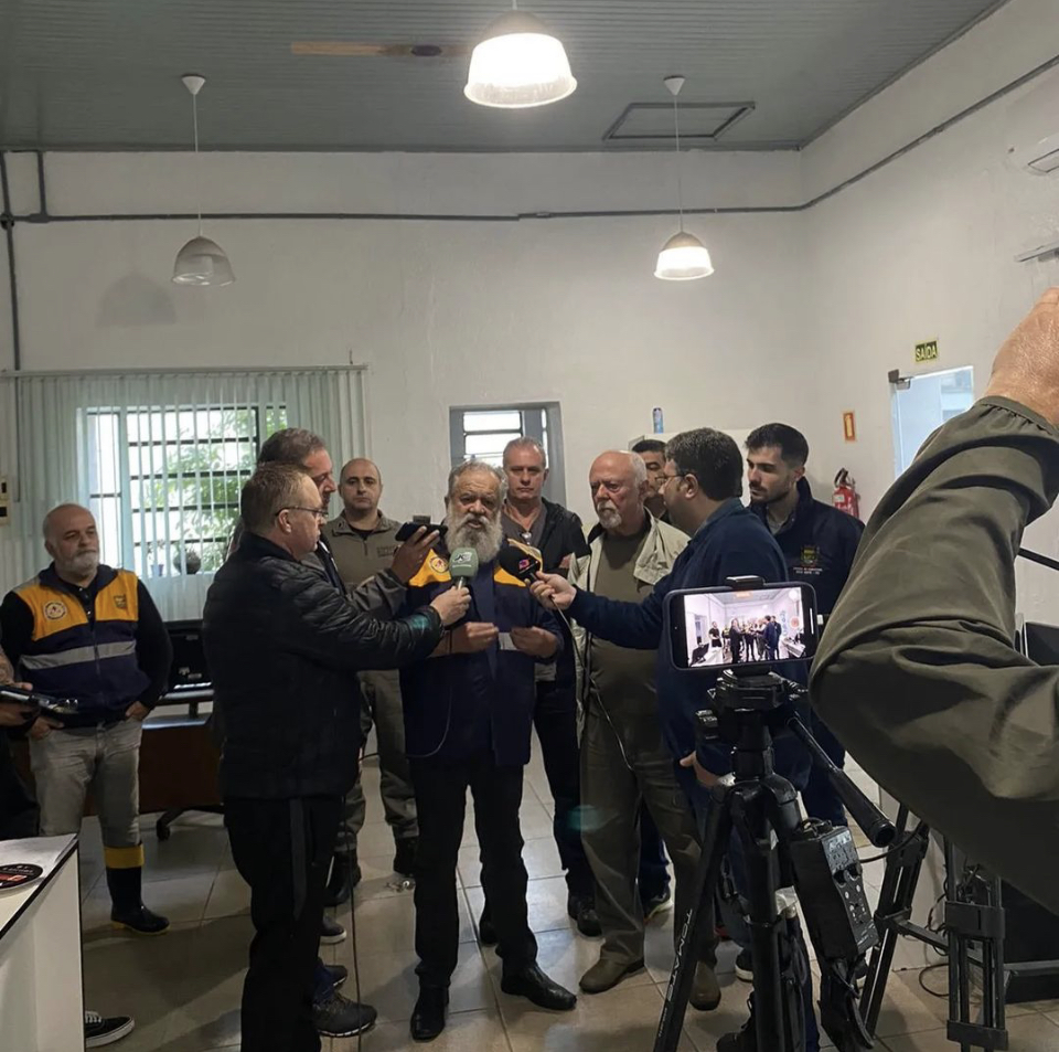 O prefeito João Luiz falou a imprensa sobre como o município irá enfrentar a situação das chuvas que atingem São Sepé. “Neste momento estamos aqui com a Defesa Civil, Corpo de Bombeiros, Brigada Militar, Câmara de Vereadores, nosso vice-prefeito e a sociedade, imbuídos dos melhores propósitos para não deixarmos sem atendimento nenhuma pessoa da comunidade”, disse ele.