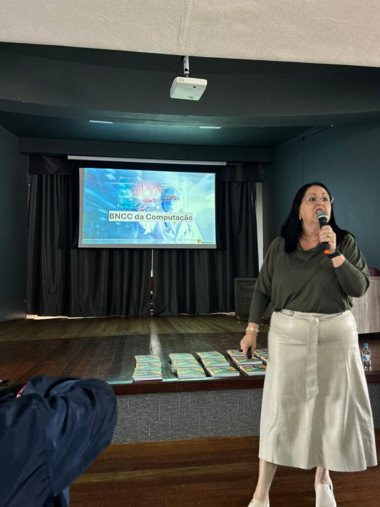 Durante a manhã, na Fundação Cultural Afif Jorge Simões Filho, os educadores participaram de duas palestras. A primeira abordou a PNEERQ – Política Nacional de Equidade, Educação para as Relações Étnico-Raciais e Educação Escolar Quilombola, ministrada por Fernanda Duarte de Oliveira. Na sequência, Adriana Padilha conduziu uma palestra sobre a BNCC da Computação, apresentando as diretrizes e possibilidades de inserção da área no currículo escolar.