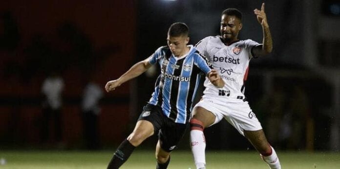 Em mais uma fraca atuação, o Grêmio não saiu do empate com o Vitória por 1 a 1, no Barradão, nesta quarta-feira à noite, pela 37ª rodada do Brasileirão. João Pedro abriu o placar para o Tricolor, mas Alerrandro, um dos artilheiros do campeonato, deixou tudo igual para o Leão da Barra. Com o resultado, os gaúchos chegaram aos 45 pontos, subiram para a 12ª colocação, mas deram adeus às chances de classificação para a Libertadores de 2025. No domingo, às 16h, o adversário é o Corinthians, na Arena.