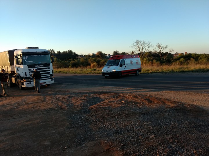 A vítima teve fratura em uma das pernas e precisou ser removida para o Hospital Santo Antônio. Já o condutor do caminhão não se feriu. O SAMU e a Brigada Militar atenderam a ocorrência.