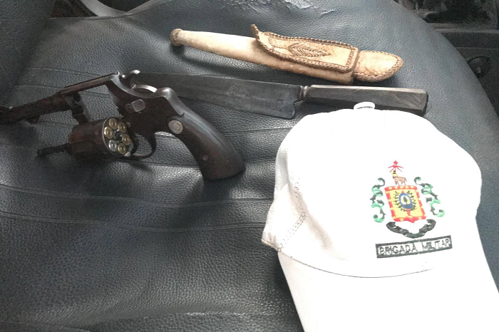 O preso teria dito que iria em casa buscar uma arma “para matar”. Quando a BM chegou, o homem estava embriagado. Com ele os policiais encontraram um revólver calibre 38 e uma faca.
