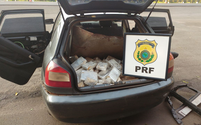 No final da tarde de domingo, 17, a Polícia Rodoviária Federal (PRF) prendeu na BR-158, em Cruz Alta, um homem transportando cerca de 150 quilos de maconha em um Audi argentino.