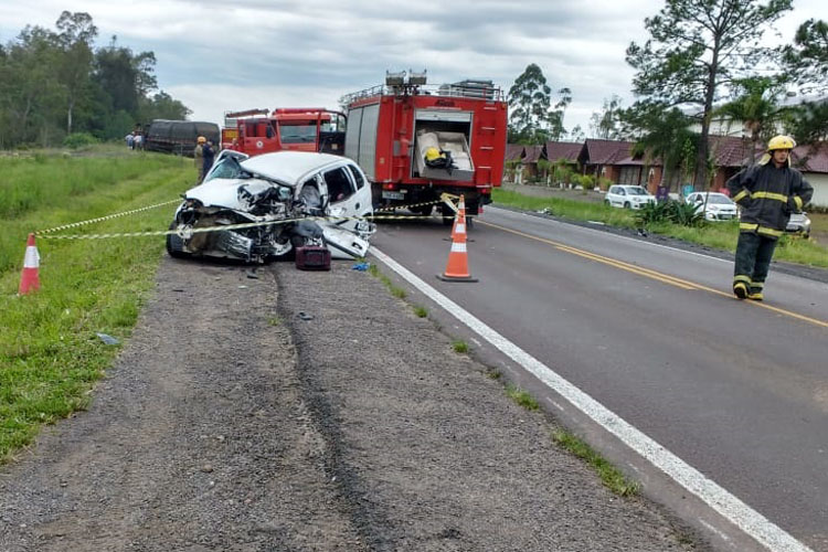 O Corsa, com placas de Caxias do Sul, colidiu em um caminhão Ford Cargo, também de Caxias. O motorista do caminhão não teve ferimentos.